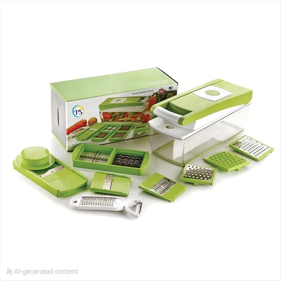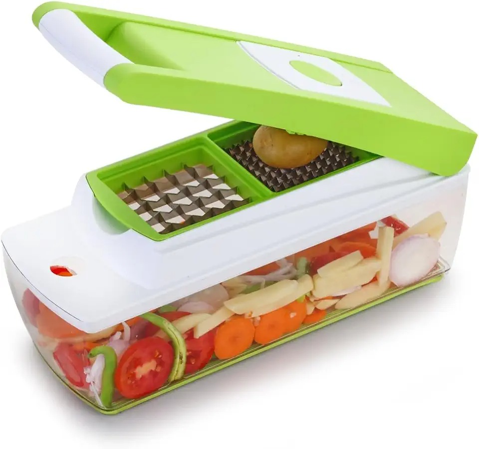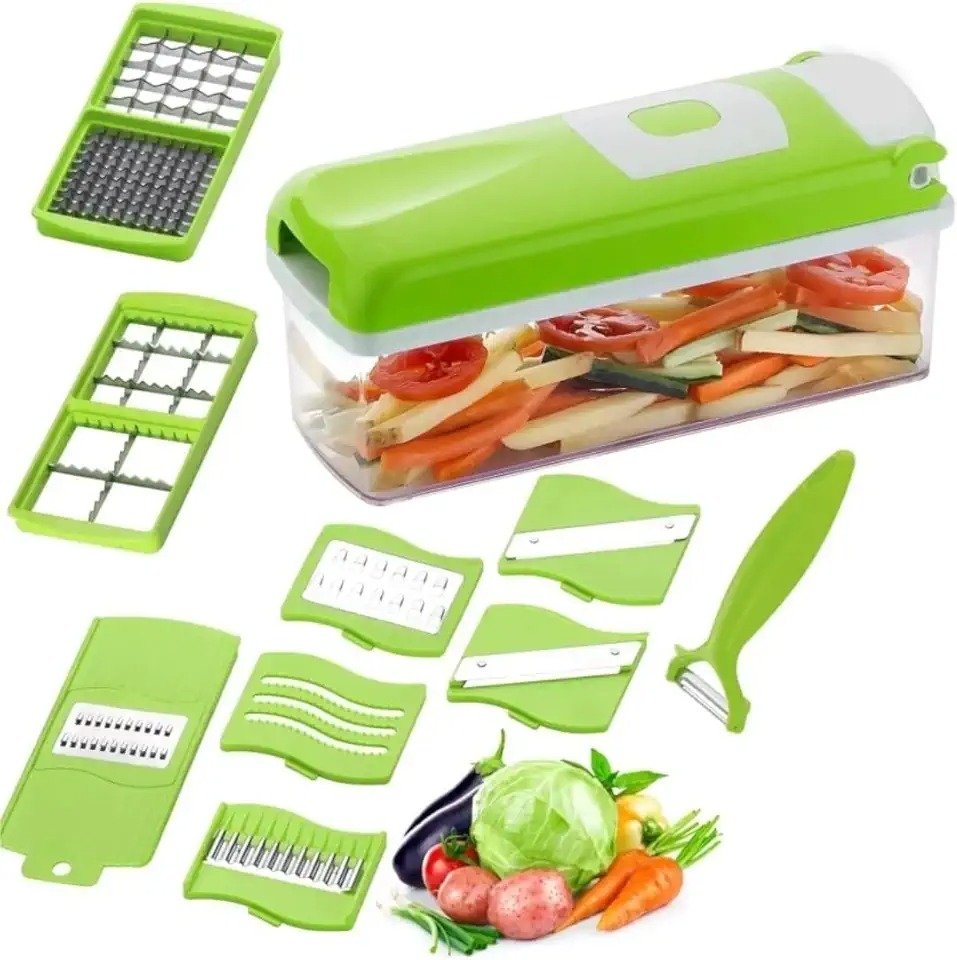 MOKRUSH 13 in 1 Multipurpose Chopper, Fruits & Vegetable Cutters, Grater Peeler Chipser, Unbreakable Food Grade Body, Easy Push to Clean Button Slicer Dicer, Chopper for Kitchen (Green)